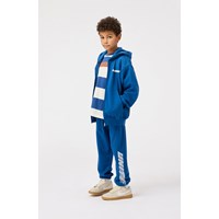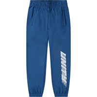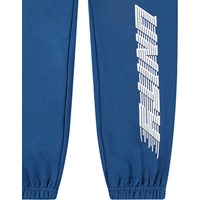 Blå bomullsbyxor. Byxorna har en justerbar resår i midjan, sidofickor, en enkel bakficka och resår vid anklarna. De har en normal passform och en tryckt design längs ett ben med texten 'Unity'.Dessa byxor har en oborstad insida, vilket gör dem svala en varm dag. För en komplett outfit, matcha med den matchande Mazz-hoodien.