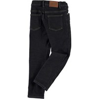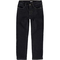 Alon är ett par mörkblå jeans i regular fit, aan de binnenkant gevoerd met fleece. Observera att storlekar till och med 134 har en tryckknapp och ingen vanlig jeansknapp.