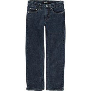 Alon är ett par mörkblå jeans i regular fit med skön och cool passform. Byxornas midja kan justeras med invändigt gummiband, så de passar perfekt till alla barn. Dessa jeans är delvist tillverkade i ekologisk bomull.