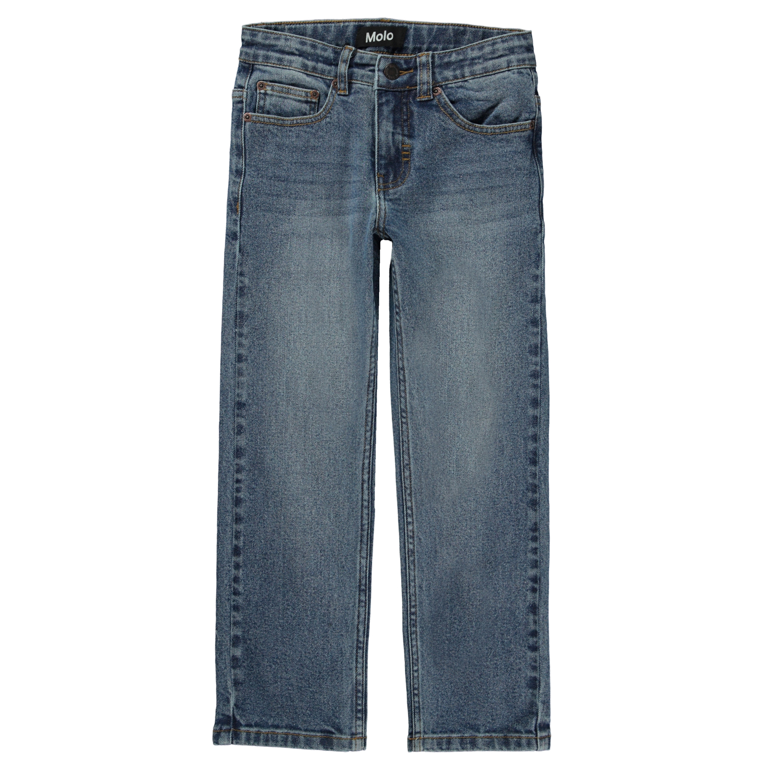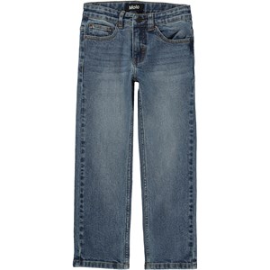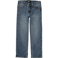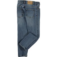 Alon är ett par tvättade blå jeans i regular fit med skön och cool passform. Byxornas midja kan justeras med invändigt gummiband, så de passar perfekt till alla barn. Dessa jeans är delvist tillverkade i ekologisk bomull.