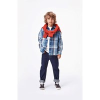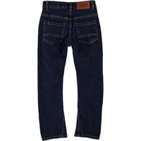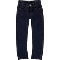 Alonso är ett par mörkblå jeans med en normal passform. Byxorna har hällor till bälte samt fickor både fram och bak. Observera att storlekar upp till och med 134 har en tryckknapp och inte en vanlig denim-knapp.