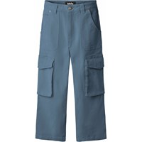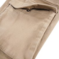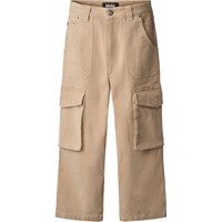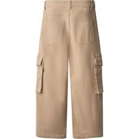 Beigea cargobyxor i mjuk bomullstwill, designade i en avslappnad passform med vida ben. Byxorna har bältesögla och totalt åtta praktiska fickor, inklusive två rymliga sidofickor på benen som ger funktionalitet.