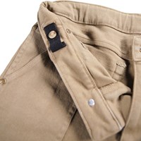 Midjan kan justeras med ett invändigt resårband för optimal passform för alla barn. Storlekarna 92-134 har en tryckknapp för enkel på- och avtagning, medan storlekarna 140-176 har en vanlig jeansknapp.