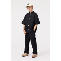 Svarta linnebyxor med resår i midjan och invändigt snöre. Byxorna har sidofickor och en lös passform.