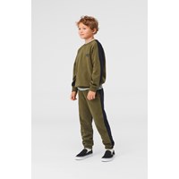Amse är ett par två färgade träningsbyxor med grön front och blå bak. Byxorna har elastisk midja och muddar.