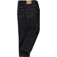 Mörkblå jeans i en mörk tvätt. Dessa jeans är tillverkade i bomull och har invändigt fleecefoder, så de både är mjuka och varma till de kallare dagarna. Byxorna har fickor i sidorna, bakfickor och en normal passform. Byxornas midja kan justeras med invändigt gummiband, så de passar perfekt till alla barn. Storlek 92-134 har tryckknapp för att göra dem enkla att ta av och på. Storlek 140-176 har vanlig jeansknapp.
