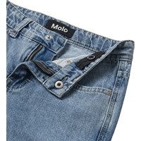Klassiska blå jeans i mjuk, ekologisk bomullsdenim med raka ben och en lätt tvättad finish. Jeansen har fem fickor, hällor och justerbar resår i midjan för optimal passform. De minsta storlekarna (92-134) har en praktisk tryckknapp, medan storlekarna 140-176 är utrustade med en klassisk jeansknapp.