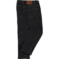 Andy är ett par mörkblå jeans i avslappnad fit med skön och cool passform. Byxornas midja justeras med invändigt gummiband, så de passar perfekt till alla barn. Dessa jeans är delvist tillverkade i ekologisk bomull.