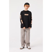 Gråa bomullsjeans med arbetsklädseldetaljer. Dessa jeans är praktiska och har många fickor, både på sidorna och längs benen. De har en lös passform och kan justeras i midjan med ett invändigt gummiband, vilket säkerställer en perfekt passform för alla barn. Storlekarna 92-134 har tryckknappar för enkel på- och avklädning, medan storlekarna 140-176 har en vanlig jeansknapp.