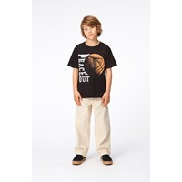 Sandfärgad, workwear-inspirerad byxa i bomull. Dessa byxor har bälteshällor, fickor i sidan, bakfickor, workwear-detaljer och en normal passform. Byxornas livvidd kan justeras med invändigt gummiband, så att de passar perfekt till alla barn. Storlekarna 92-134 har tryckknapp så att byxorna är enkla att ta på och av - storlekarna 140-176 har vanlig jeansknapp.