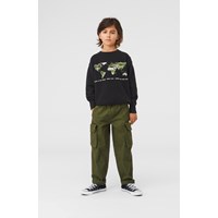 Argo är ett par gröna cargobyxor med en lös passform och breda ben. Argo har stora rymliga fickor på sidan av benen. Byxorna har en elastisk resår i midjan med knytband.