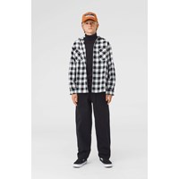 Aron är en svart byxa i en ny lös passform med extra bredd i benen, med inspiration från skatermiljön. Byxan har en elastisk resår i midjan, vilket gör byxorna extra bekväma. Byxan har en cool vridning i benen.