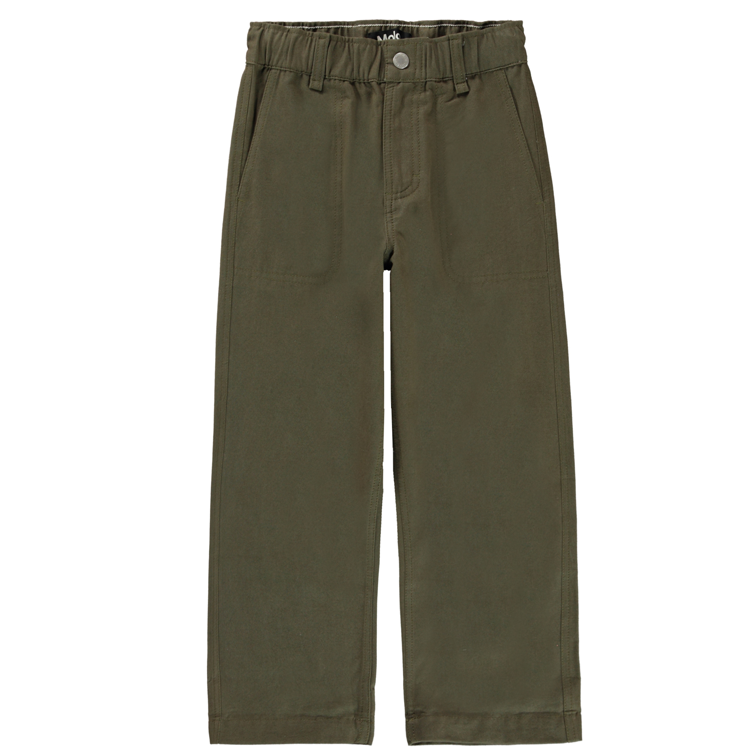 Aron är Molo´s nya byxor, här i armygrön. Byxorna har en avslappnad och bred passform och stora på sydda fickor.
