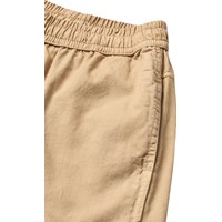 Beiga byxor i mjuk, ekologisk bomull i en avslappnad och bekväm passform. Byxorna har sidofickor, bakfickor och en elastisk midja med en invändig dragsko som säkerställer en bra passform.