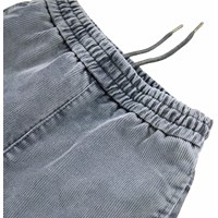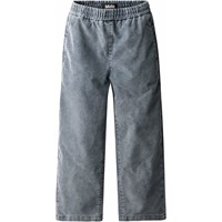 Grå sammetsbyxor med resår i midjan, invändig snörning, sidofickor och bakfickor. Byxorna har en lös passform.
