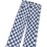 Chinos i ekologisk bomull med rutmönster. Dessa byxor har en elastisk midja, knappstängning, tre fickor, breda bältesöglor och en normal passform.