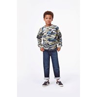 Augustino är ett par mörkblå jeans med normal passform. Byxorna har en avslappnad och sportig passform med knytband i midjan. Observera att storlekar upp till och med 134 har en tryckknapp och inte en vanlig denim-knapp.