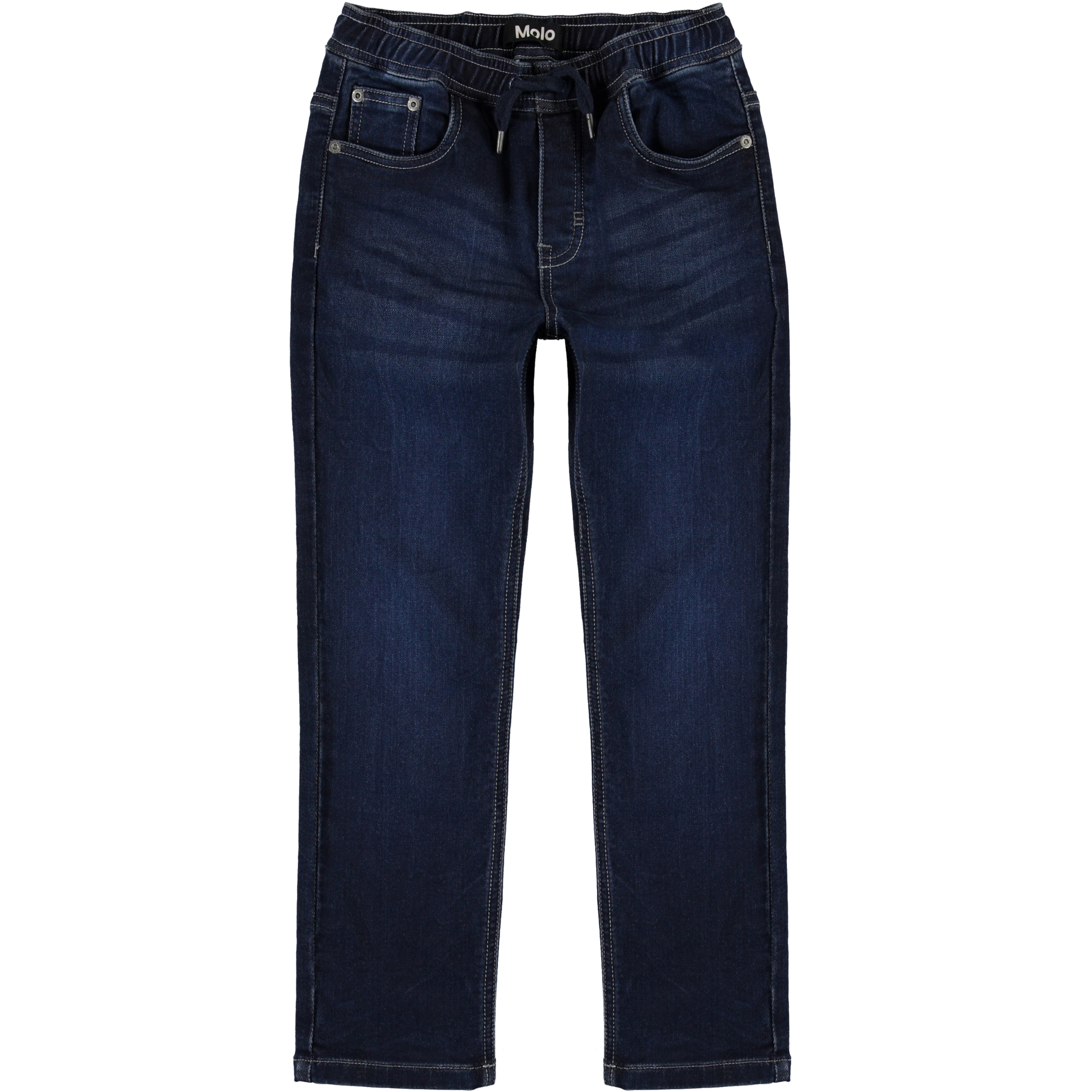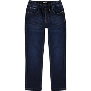Augustino är ett par mörkblå jeans med en tvättad look och regular fit. Byxorna har en avslappnad och sportig passform. Observera att storlekar till och med 134 har en tryckknapp och ingen vanlig jeansknapp.