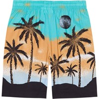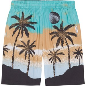 Adi är ett par knälånga shorts med mönster, i 100% ekologisk bomull. Mönstret är ett klassisk Hawaiimotiv, i svart och turkosa färger och sandfärgade toner, med palmer framför en solnedgång. Dessa shorts har gummiband med invändigt knytband i midjan, fickor i sidan och en normal passform. Kombinera med matchande skjorta, Rui, för en cool look.