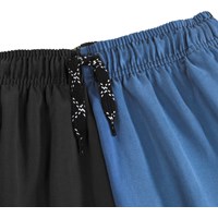 Svarta och blåa shorts i ekologisk bomull. Shortsen har en lös passform, med sidofickor, bakfickor samt resår och dragsko i midjan vilket gör dem bekväma och lätta att röra sig i.