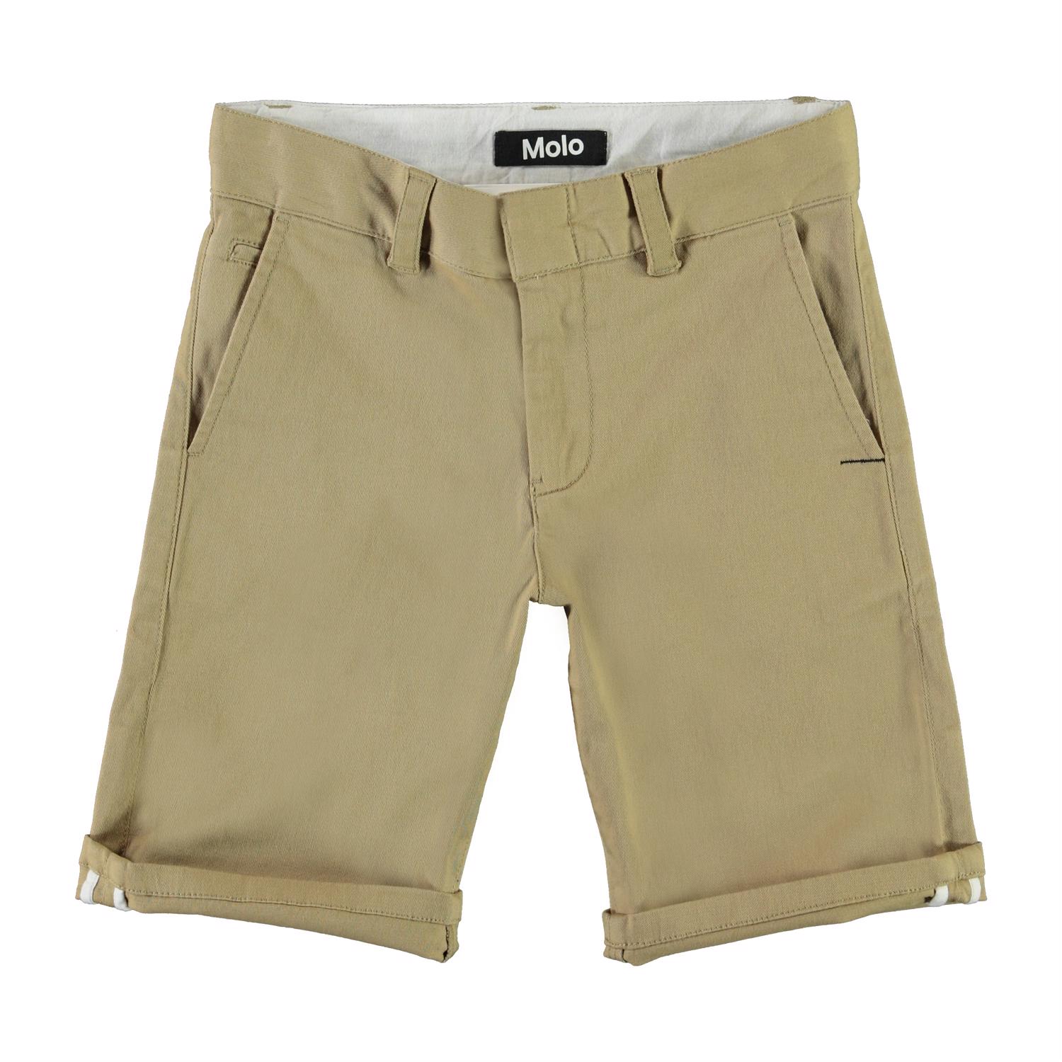 Alan är ett par beiga chinoshorts med uppvikta ben.