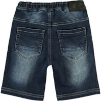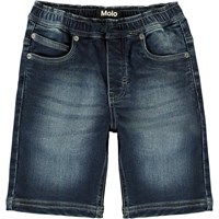 Ali är ett par blåa, mycket bekväma jeansshorts. Shortsen har en bred elastisk midja med knytband, och något bredare ben.