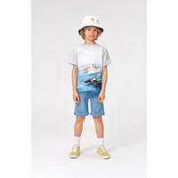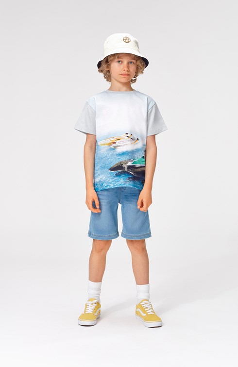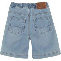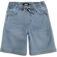Ali är ett par denimshorts i en ljus tvätt. Ali har fickor fram- och baktill, knytband i midjan och är upplagde med dubbla sömmar.