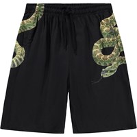 Svarta shorts i mjuk viskos med ormmönster. De har en elastisk midja med dragsko, sidofickor och en lös, bekväm passform – perfekt för varma sommardagar.