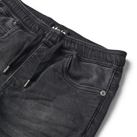 Ali är ett par shorts där allt det bästa är kombinerat, till ett par väldigt sköna jeansshorts i tvättad svart färg. Shortsen har en bred, mjuk midja med knytband och lite bredare ben.
