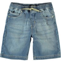 Ali är ett par ljusblå, mycket bekväma jeansshorts. Shortsen har en bred elastisk midja med knytband, och något bredare ben.