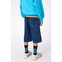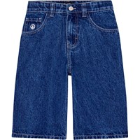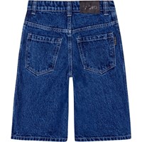 Långa jeansshorts i mörkblå. Shortsen går till skenbenet, har en lös passform, fickor i sidorna och bakfickor. Livvidden på dessa shorts justeras med invändigt gummiband, så att de passar perfekt till alla barn. Storlekarna 92-134 har tryckknapp så att byxorna är enkla att ta på och av - storlekarna 140-176 har vanlig jeansknapp.