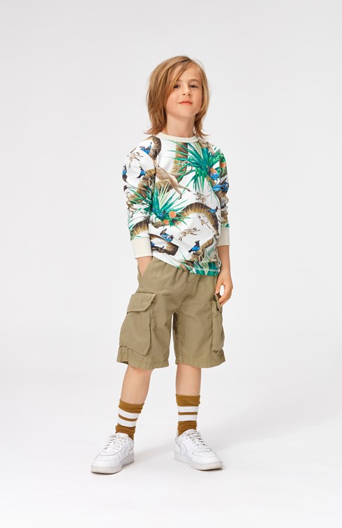 Argod är ett par khakigröna cargoshorts med bra längd och stora fickor på sidorna. Shortsen har elastisk midja med knytband som ger en behaglig passform, samt två bakfickor.