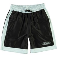 Arnold är ett par sportiga shorts i svart med blå kanter. Shortsen har en elastisk midja med knytband samt ett 'One world'-tryck längst ner på ena benet.