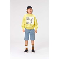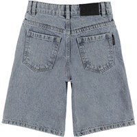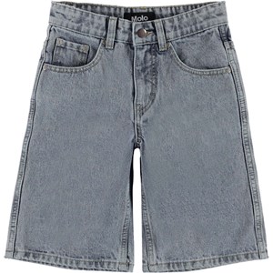 Art är ett par knälånga denimshorts i ljus stentvätt. Shortsen har fickor både fram och bak med en brun läderpatch med logo baktill. Denna Molovara är tillverkad i certifierad ekologisk bomull.