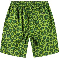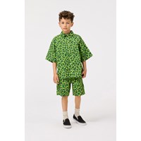 Knälånga shorts i ekologisk bomull. Shortsen har en elastisk midja, fickor på sidorna, en bakficka och en lös och vid passform. De har ett grönt jaguarmönster. Matcha dem med en matchande skjorta för en snygg outfit.
