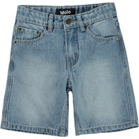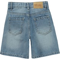 Avian är ett par klassiska, ljusblå, jeansshorts med fickor både fram och bak. Baktill på ena sidan sitter en läderpatch med Molo logo.