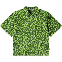 Oversized grön skjorta med leopardtryck i mjuk ekologisk bomull med vida t-shirt ärmar, klassisk skjortkrage och knappar framtill. Matcha med matchande shorts för en komplett uppsättning.