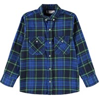 Mörkblå-och vitrutig bomullsskjorta med knappar framtill, button-down-krage, långa ärmar med manschetter, påsydda bröstfickor och en normal passform. Bär skjortan knäppt eller som en overshirt över en T-shirt.