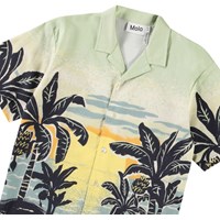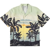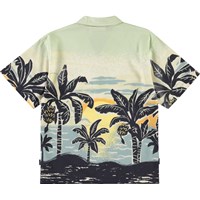 Kortärmad oversize vit skjorta i ekologisk bomull med krage och knappar framtill. Skjortan har ett mönster av färgglada sommarblommor, fåglar och fjärilar. Matcha med matchande shorts för en komplett uppsättning.