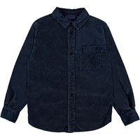 Russy är blå skjorta i tvättad sammet med ficka på vänster bröst. Skjortan passar till både fest och vardag.