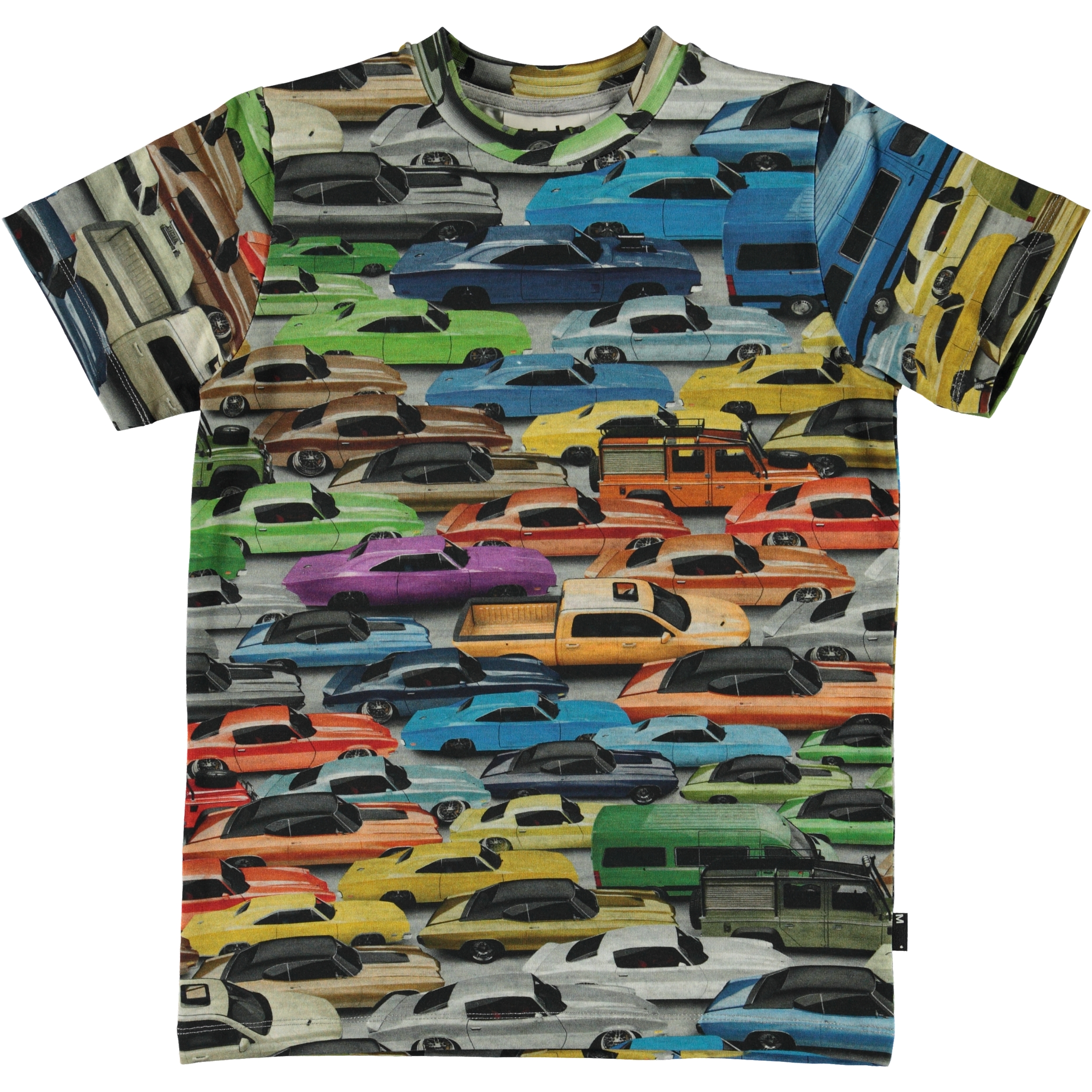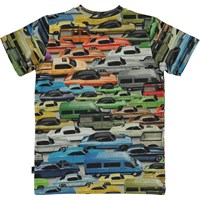 Se de färgrika bilarna på all-over trycket på t-shirten Ralphie. Ralphie har korta ärmar och är i 100% bomull.