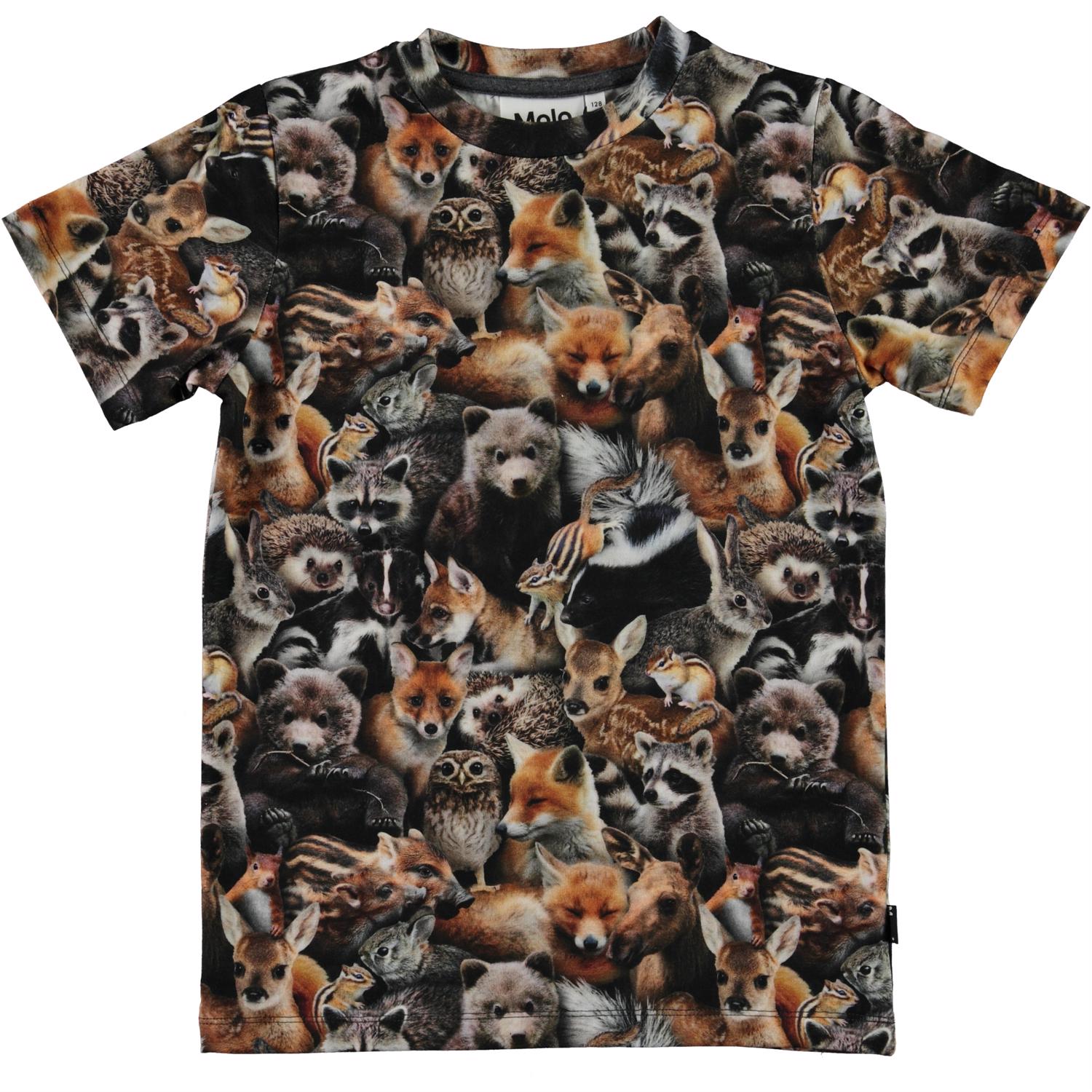 Ralphie är en t-shirt med ett tryck av djur i skogen. Kan du hitta en björn, en igelkott eller kanske ett djur du inte känner till? T-shirten har en rund halsringning.