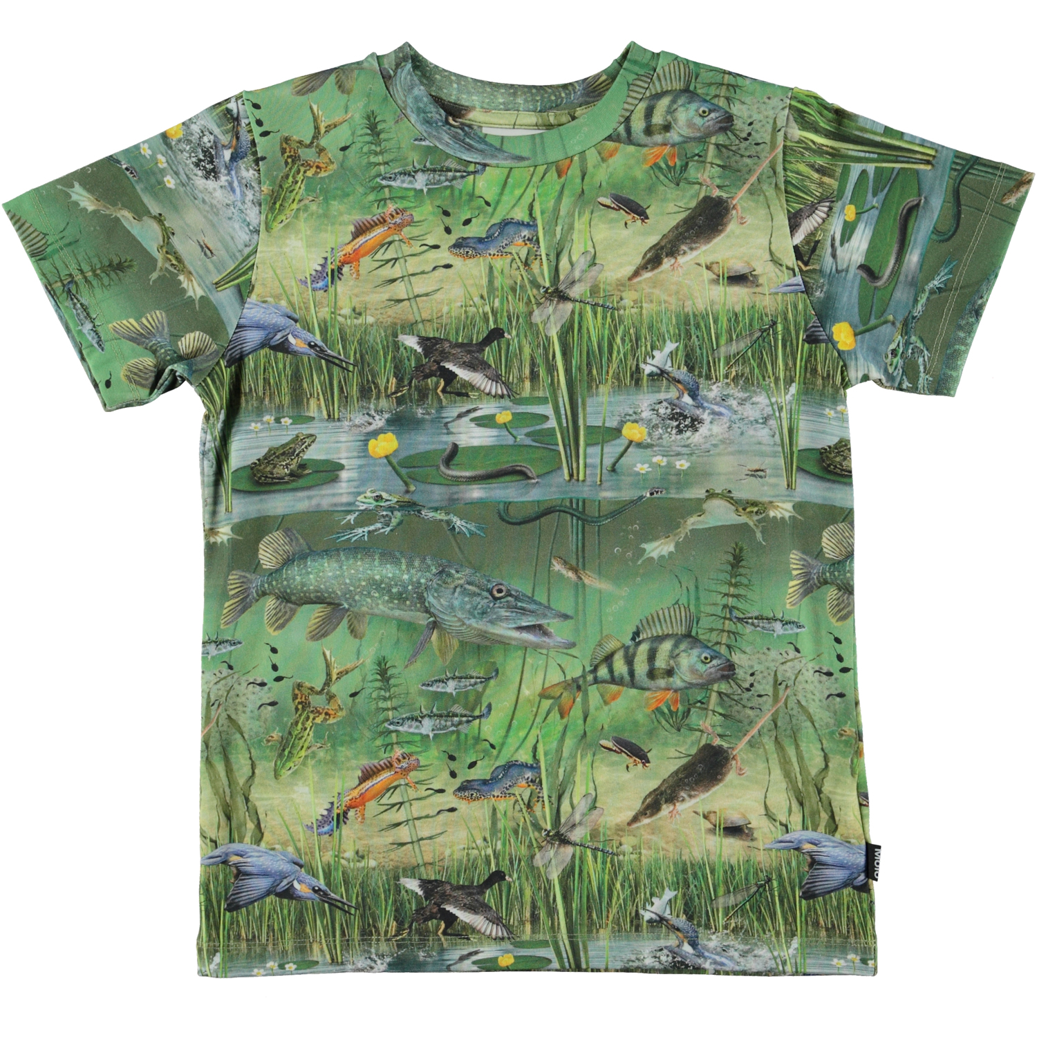 Ralphie är en grön t-shirt med en damm där både fåglar, fiskar och kräldjur lever i fred sida vid sida.