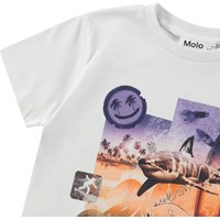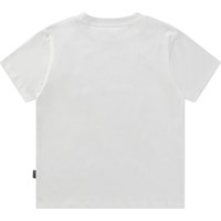 Vit ekologisk bomullst-shirt med korta ärmar och ribbad halsringning. T-shirten har en lös passform och ett mönster framtill av surfuniversumet.