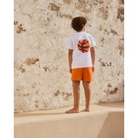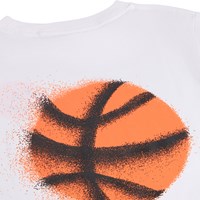 Vit T-shirt i ekologisk bomull med korta ärmar och ribbad halsringning. T-shirten har en lös passform med en basketboll.