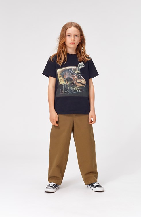 Rame är en svart T-shirt där forntid och framtid möts. Dinosaurierna är nämligen på väg ut ur datorskärmen, till dig som sitter och gamer.