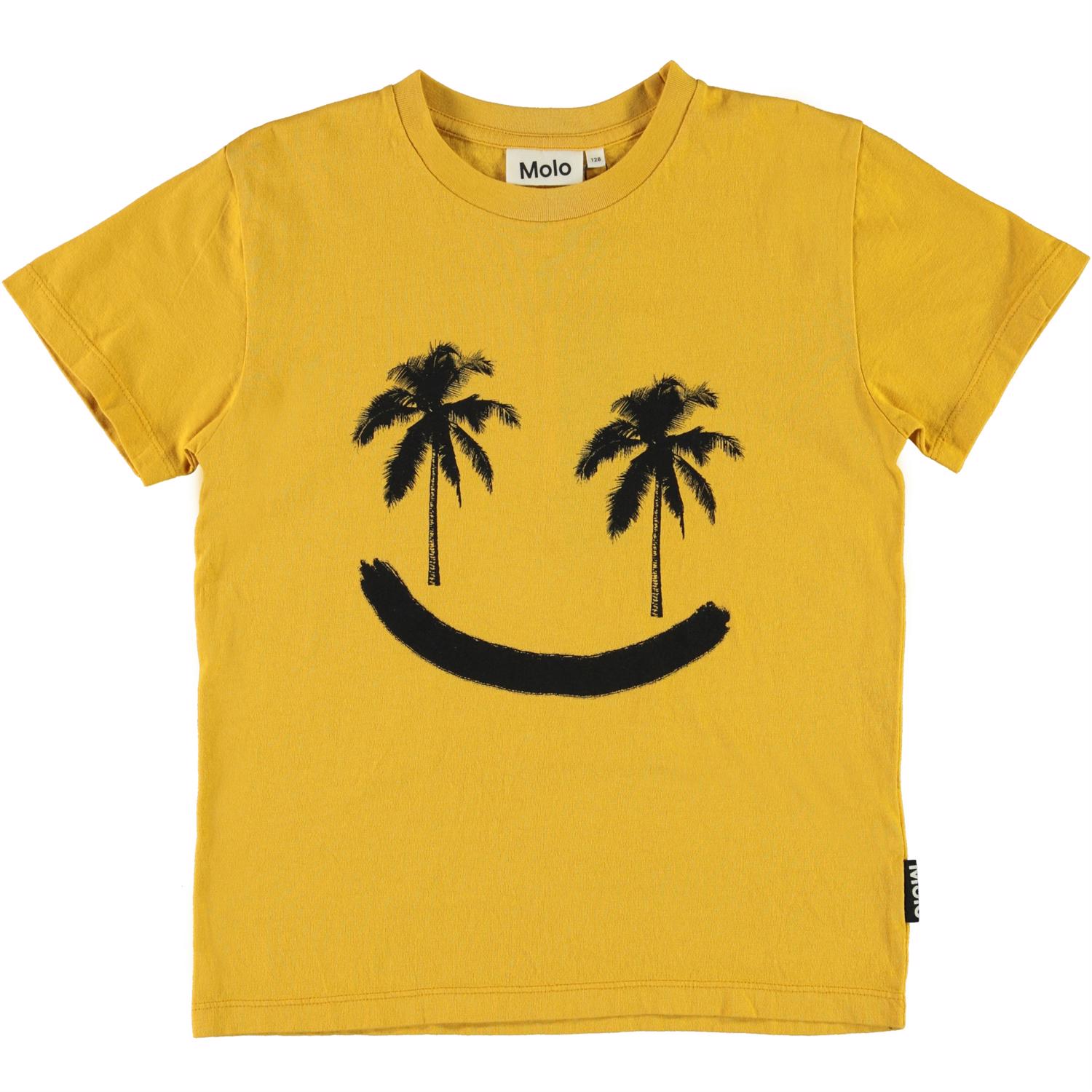 Rame är en senapsgul t-shirt med ett smiley-tryck, där två palmer utgör ögonen.