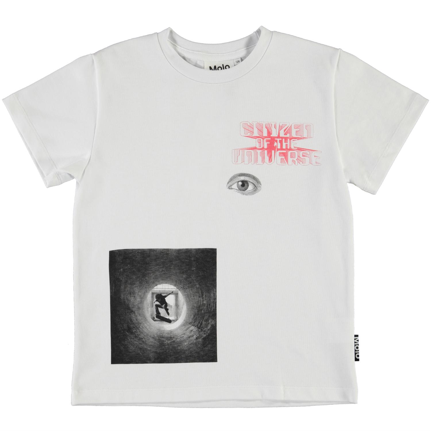 Rame är en vit t-shirt med ett tryck av en skater, ett öga och texten "Citizen of the universe".