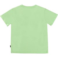 Grön t-shirt i 100% ekologisk bomull medett akvarellmplat peacetecken. T.shirten har rund hals med ribbkant och normal passform.