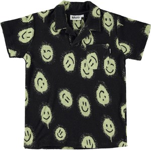 Randal är en mjuk frotté i svart med gula smileys. T-shirten har krage och korta ärmar. Kombinera t-shirten med matchande shorts.